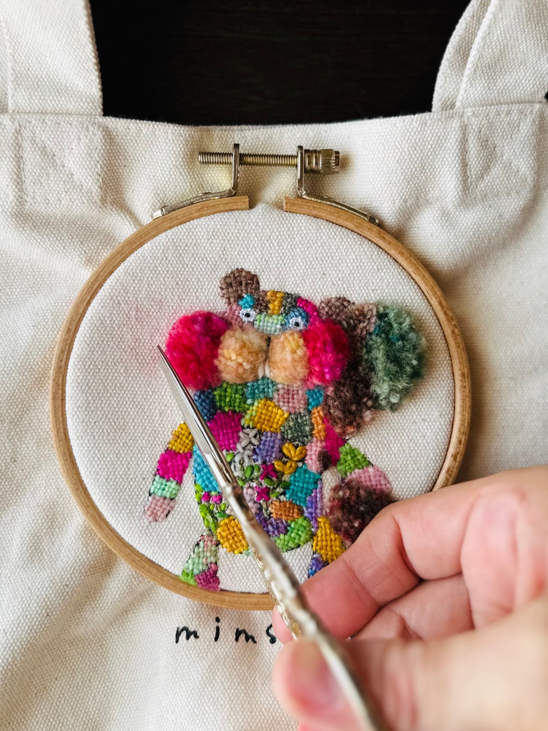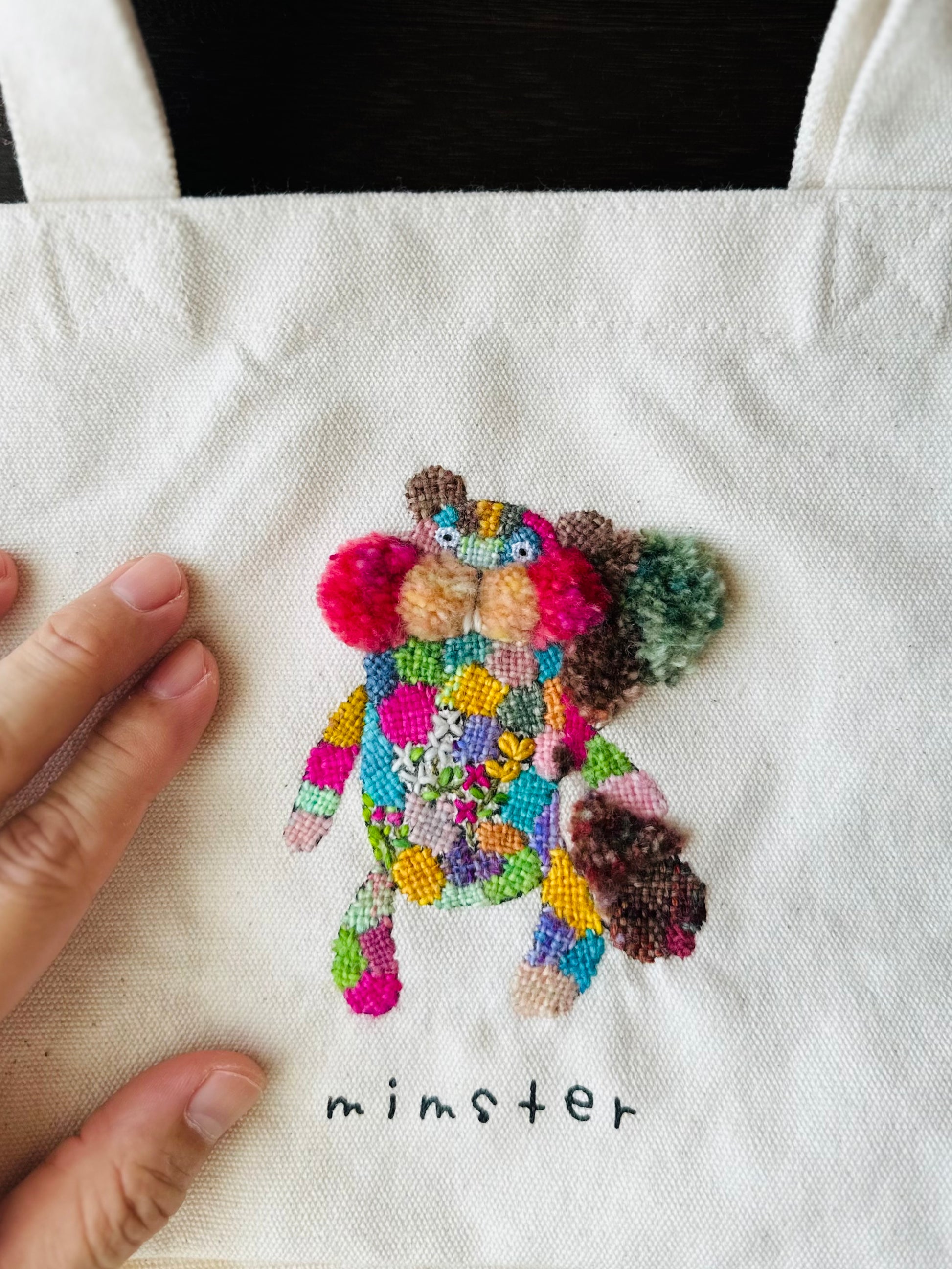 ダーニング刺繍のミムラトモミさんの、オリジナルトートバッグです。