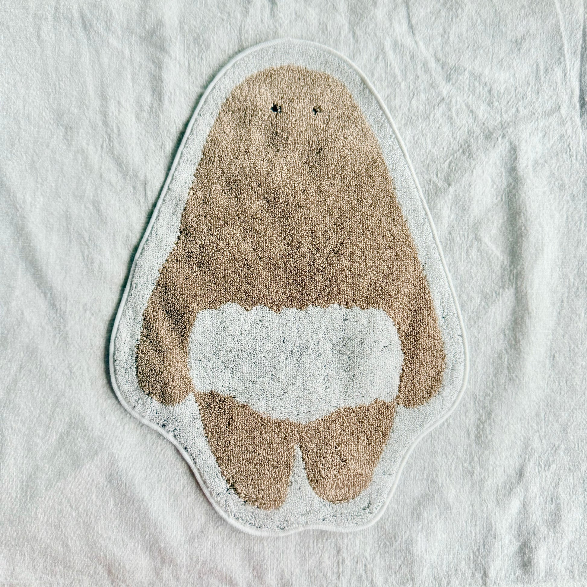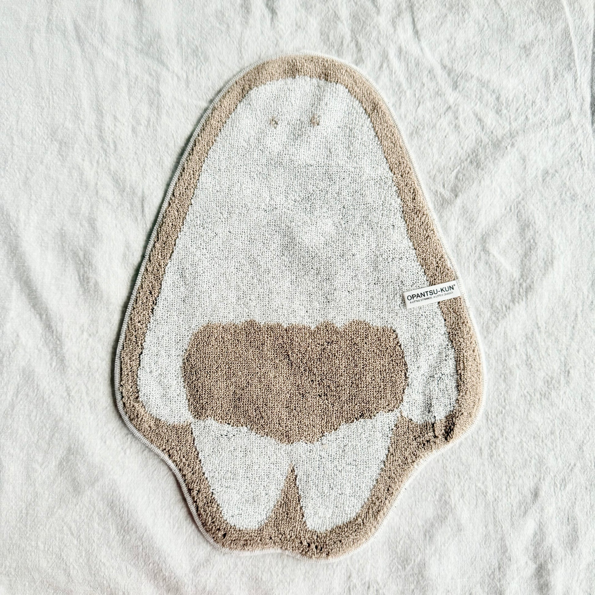 おぱんつ君のハンドタオルが登場です。愛媛県今治市で生産されたこちらのタオルは、柔らかさや吸水性もばっちり。可愛い!と目を惹く存在感でありつつ持ち歩くのにも便利なサイズにこだわりました。頭にループを付けて幼稚園タオルのようにしても便利です。畳む時も、可愛いお目目は見せておきたい♡
